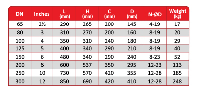 Flanged to BS EN 1092-2 PN16 formerly BS 4504