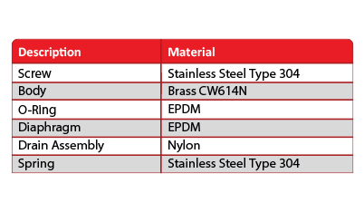- Durable EPDM diaphragm and O-rings for consistent positive seating